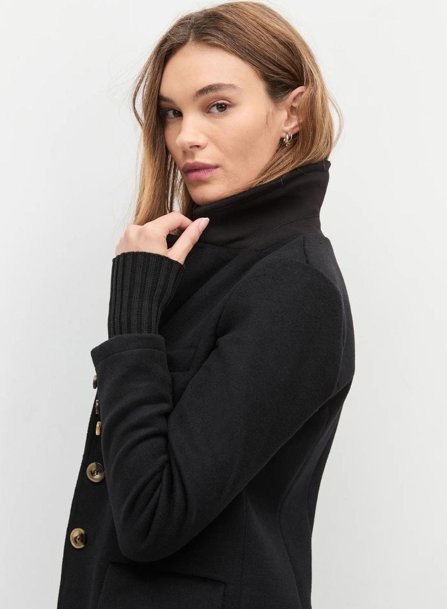 When you runway is your city sidewalk, grab this slim fit, wool-blend blazer.  There's faux horn buttons, front flap pockets, delicate stitching details and a brushed, soft finish.  But our favorite part is the cotton-cashmere ribbed cuffs.