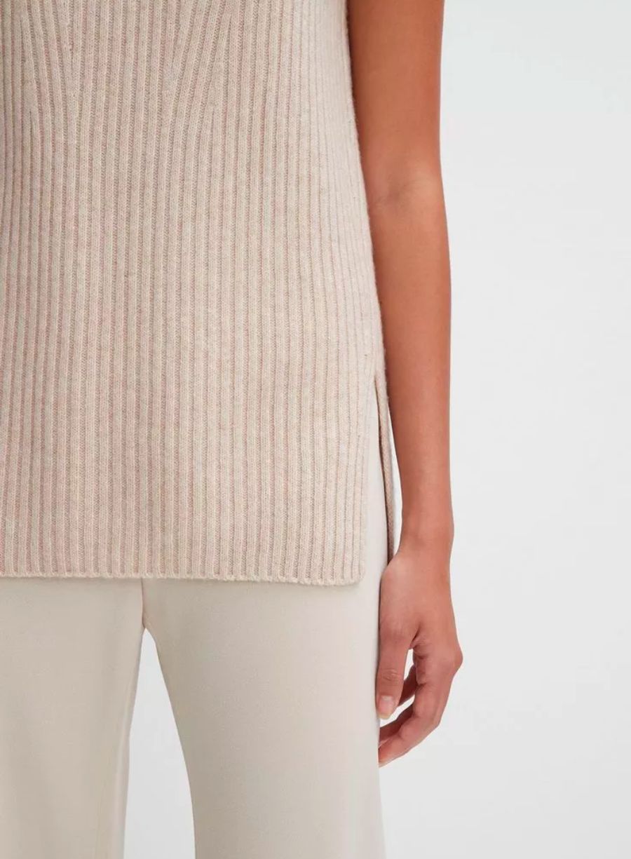 Ribbed Wool and Cashmere Sleeveless Tunic Sweater