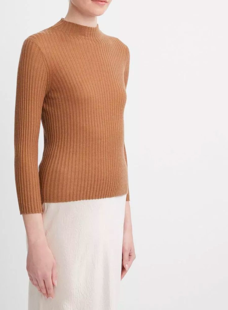 Ribbed Cashmere-Silk Mock Neck Sweater - Heather Beach